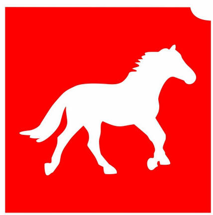 Öntapadós, kétrétegű festősablon ló mintával. Csillámtetováláshoz, arc és testfestéshez, henna festéshez, illetve textil, vagy tárgyak díszítéséhez ajánljuk. A festő sablon kettő rétegből áll: