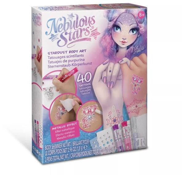 A gyerekek imádják a lemosható tetoválásokat legyen nyár vagy tél, tavasz vagy ősz. Ebben a csomagban nem kevesebb, mint 40 darab ideiglenes tetkó található. A gyerekek különböző motívumokkal díszíthetik karjukat, lábukat, amit ráadásul maguk készíthetnek el a csomagban található fémes színű tollakkal és csillogó drágakő matricákkal. A tetoválások bőrre káros anyagot nem tartalmaznak, szappanos vízzel dörzsölve könnyedén eltávolíthatók. A csillagok között élő Nebulous Stars lányok kedvesek és tele vannak jobbnál-jobb ötletekkel, így a gyerekeknek kreatív utazásban lehet részük a Galaxisukban: ékszereket, szobadíszeket, ajándékokat készíthetnek és divatos kiegészítőkkel dobhatják fel megjelenésüket. A lányok pozitív energiája és vidámsága fejleszti a kreativitást és az önbizalmat. Csomagolás mérete: 4 x 20 x 15 cm