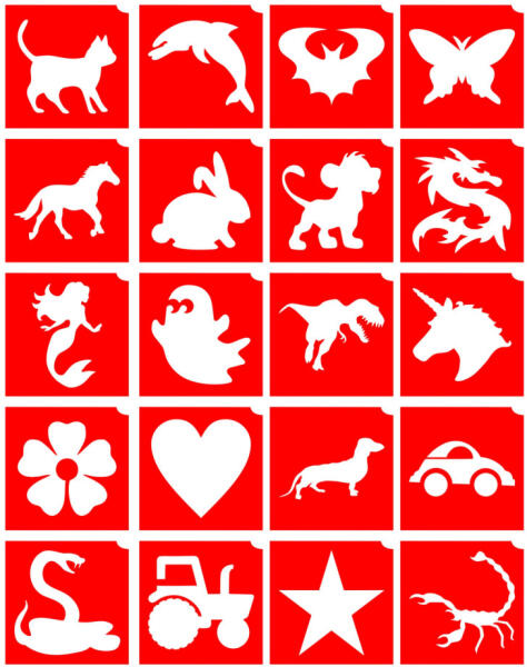 Csillámtetoválás sablon, matrica készlet lapon – Egyedi és kreatív csillám és testfestéshez 20 darab különböző mintávalKészíts gyönyörű és csillogó mintákat pillanatok alatt! A csillámtetoválás sablonok, matricák segítségével könnyedén készíthetsz egyedi csillámtetkókat, testfestéseket, amelyek garantáltan feldobják a megjelenésed. Kiknek ajánlott?