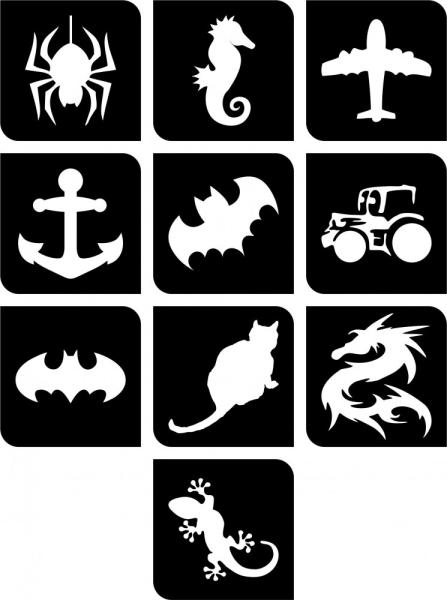 Fiús - 5 x 5 cm csillámtetoválás SABLON készlet - 10 darabos