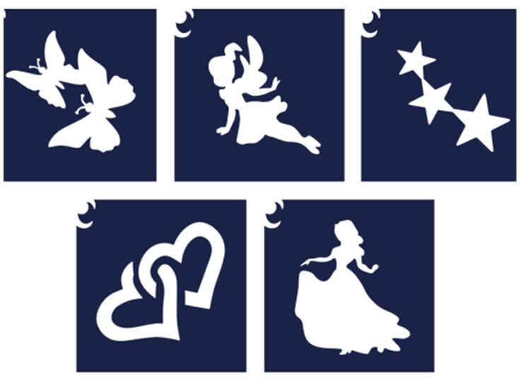 Hercegnős mini sablon szett 5db TYT-KKCST4330020 A hercegnős minták közül válogattuk ki a kicsi méretű sablonokat, amelyek a legkisebbeken is jól mutatnak. A szettbe ezek a sablonok kerültek: Tündér királylány (5x5 cm) Tündér királylány (5x5 cm) Csillag (5x5 cm) Szív (5x5 cm) Lepke, pillangó (5x5 cm)