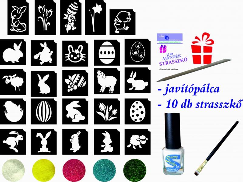 HÚSVÉTI csillámtetoválás készlet (32 db-os - 25 sablon / 5 csillámpor)