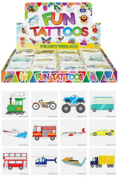 Vidám Járműves Ideiglenes Tetoválások ??✈️ 12 db izgalmas járműves ideiglenes tetoválás gyerekeknek! Készülj fel a mókára és kalandra ezekkel a könnyen felvihető és eltávolítható tetoválásokkal. Mit kapsz? 12 db 4x4 cm-es, színes járműves tetoválás Könnyű felviteli mód Egyszerű eltávolítás Tökéletes: Játékos délutánokhoz Tematikus bulikhoz Születésnapi meglepetésként Fontos! ⚠️ 3 év alatti gyermekek számára nem ajánlott, mert apró alkatrészeket tartalmaz.