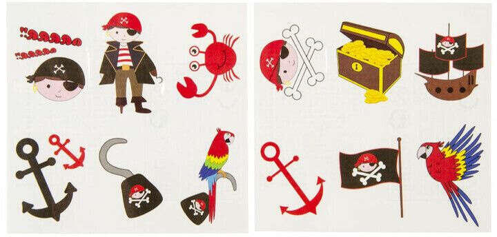 Kalóz Ideiglenes Tetoválások Gyerekeknek ?‍☠️ 12 db vidám kalóz motívummal díszített, 4x4 cm-es ideiglenes tetoválás, tökéletes szórakozás kicsiknek és nagyoknak! Könnyen felvihető, és vízzel egyszerűen eltávolítható. Remek ajándék születésnapra, vagy csak úgy, egy kis kalandért! ? A csomag tartalma: 12 db 4x4 cm-es ideiglenes tetoválás Élénk színek és vicces kalóz motívumok (kalóz, koponya, kincsesláda, papagáj, horgony, stb. ) Jellemzők: Könnyen felvihető és eltávolítható Biztonságos a bőrre Mosható Tartós, egész napos szórakozás Figyelem! ⚠️ 3 év alatti gyermekek számára nem ajánlott. Apró alkatrészek lenyelése fulladást okozhat.