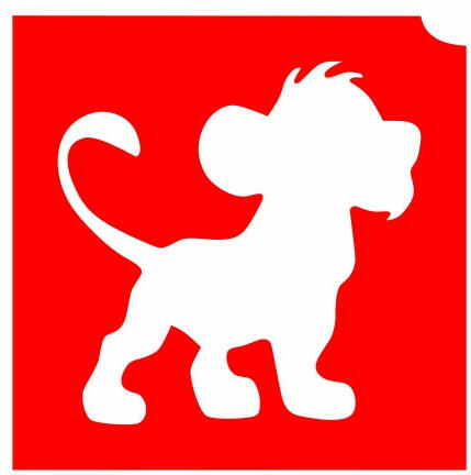 KiviArt Öntapadós, kétrétegű festősablon oroszlán kölyök mintával. Csillámtetováláshoz, arc és testfestéshez, henna festéshez, illetve textil, vagy tárgyak díszítéséhez ajánljuk. A festő sablon kettő rétegből áll: