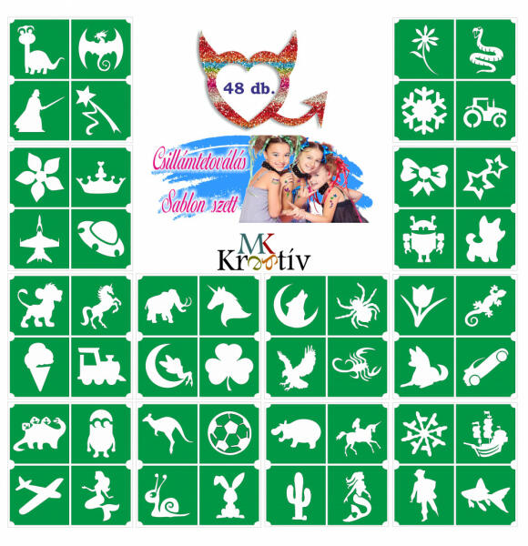 • 12 darab. 4 az egyben csillámtetováláshoz sablonok .