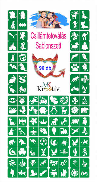 KiviArt Óriás Csillámtetoválás sablon szett 96db - 4 in 1