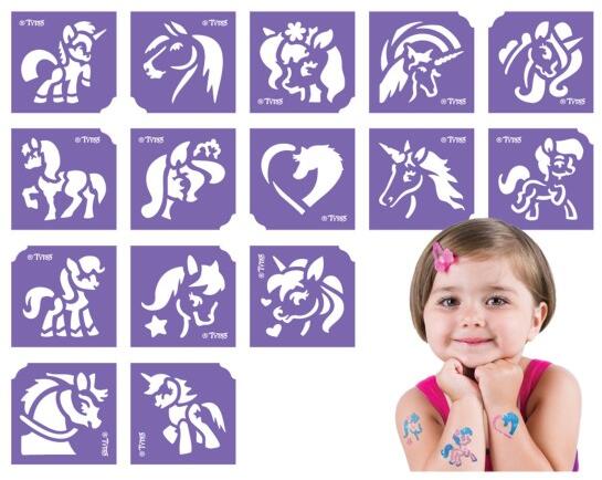 Tytoo Csillám tetoválás lovak és unikornisok sablon szett, lányoknak, 15 db-os, TY50156