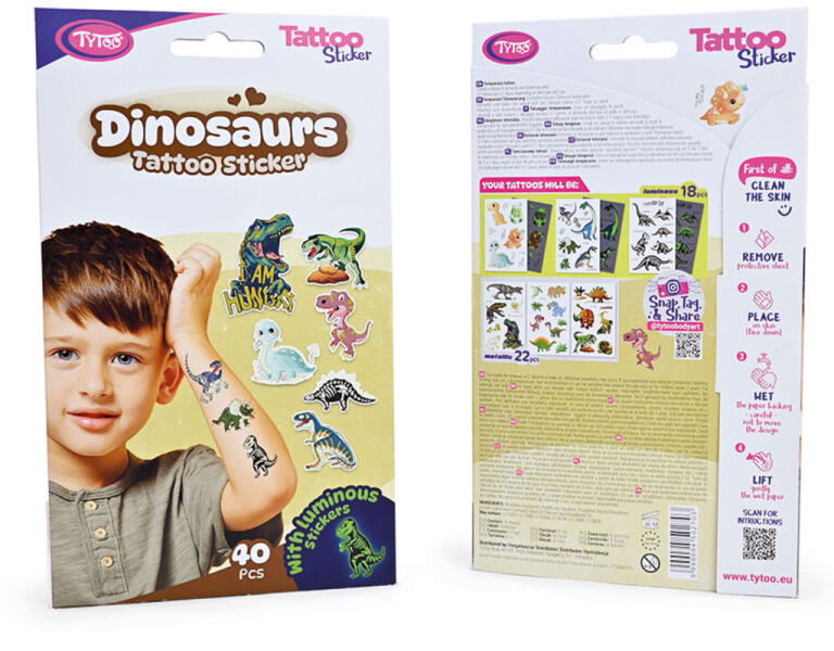 TyToo Dinoszauruszos tetoválás matrica szett - 40 db / csomag (TY50270)