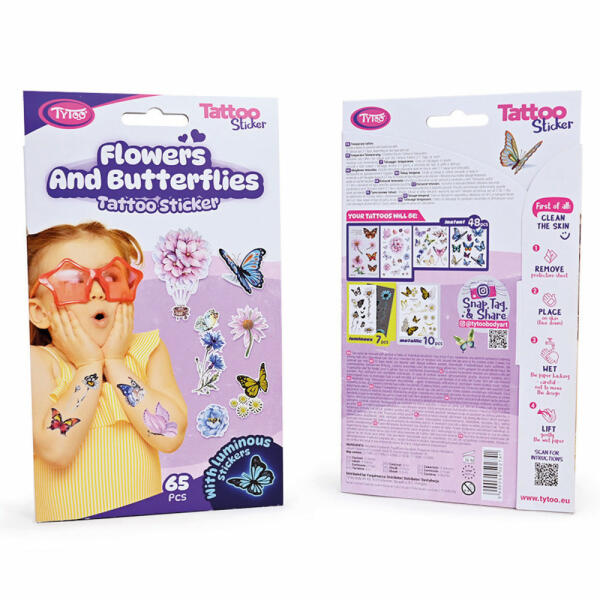 Tytoo Pillangók és virágok tetoválás matrica szett - 65 db / csomag (TY50274) (TY50274)